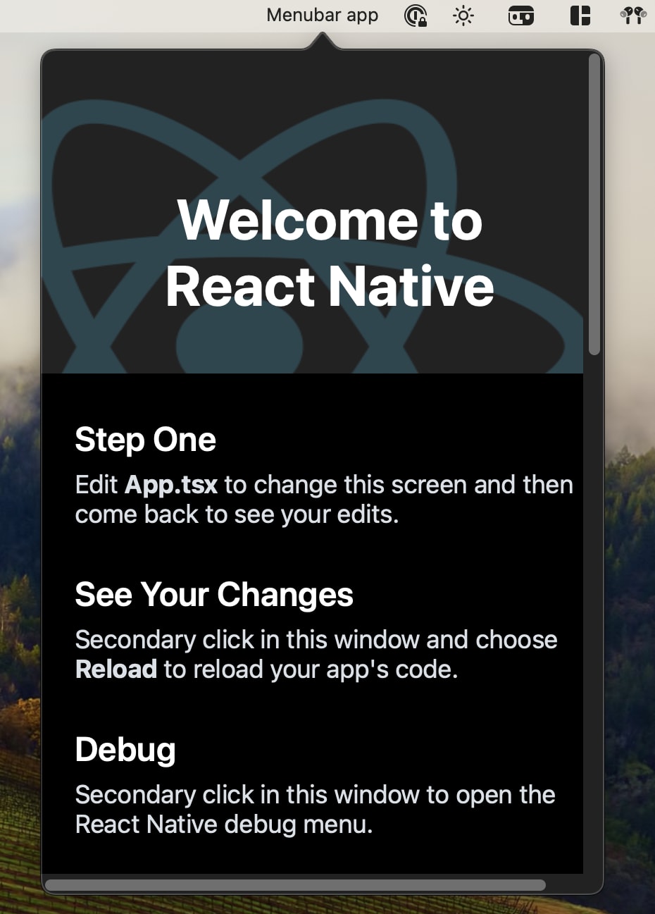 Creating a macOS MenuBar app with React Native